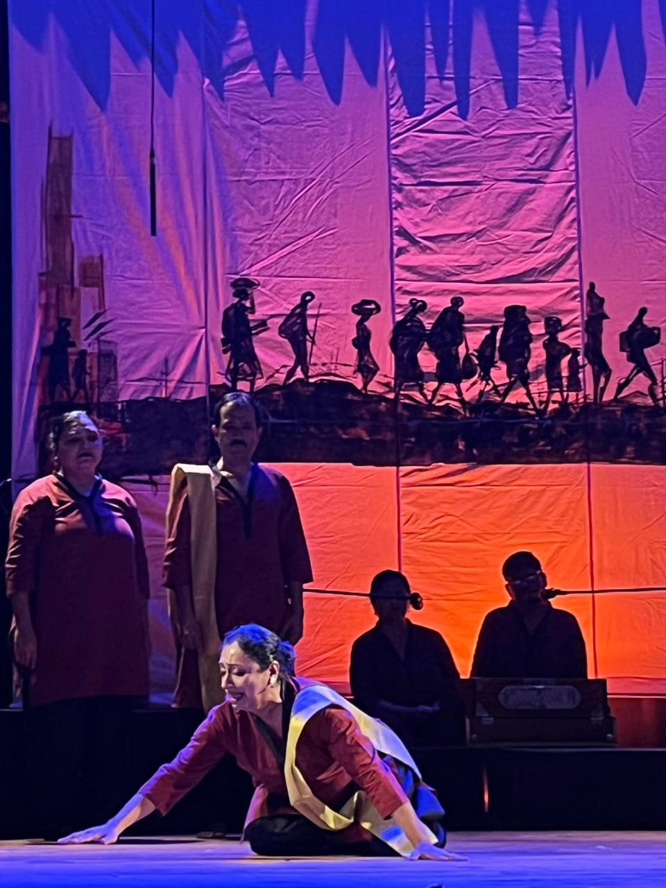 ১ ঘণ্টা ১০ মিনিটের প্রযোজনাটির কেন্দ্রীয় চরিত্র হিসেবে উঠে এলেন মহাত্মা গান্ধী— যিনি প্রথম থেকেই দেশভাগের বিরোধিতা করেছিলেন। মঞ্চ দেখালো কীভাবে রাজনৈতিক স্বার্থ আর মুনাফার খেলায় দাঙ্গা লাগানো হয়েছিল, কীভাবে হাজারো মানুষ স্বপ্নভঙ্গের শিকার হয়েছিলেন। মুনাফার চরিত্রটি মঞ্চে জীবন্ত হয়ে উঠল আবৃত্তি ও নৃত্যের মিশেলে।