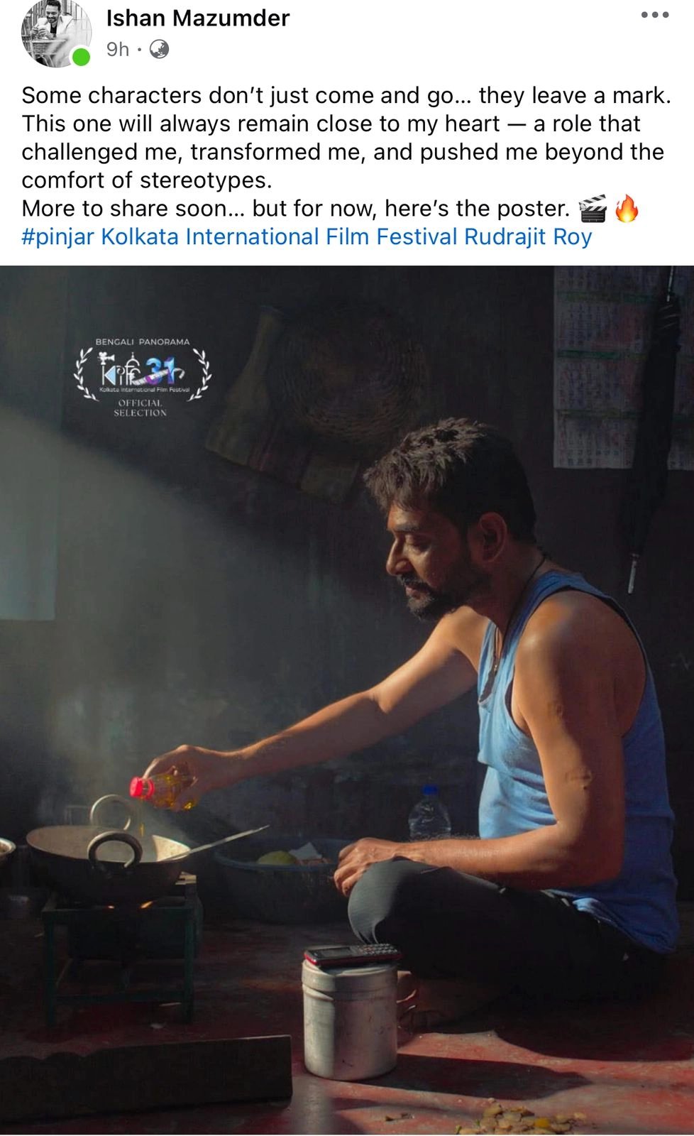 এই ছবি প্রসঙ্গে আজকাল ডট ইন-কে ঈশান বললেন, “এই ছবিটা আমার আগামী সিনেমা ‘পিঞ্জর’-এর। মাল্টিলিঙ্গুয়াল ছবি। বাংলা-হিন্দি দু'ভাষাতেই তৈরি করা হয়েছে। সেই ছবিতে আমার অভিনীত চরিত্রটির নাম ইকবাল। সমাজের অর্থনৈতিক কাঠামোর একেবারে প্রান্তিক পর্যায়ের মানুষ সে। পাখি ধরে বেড়ানো এবং তা হাটে-বাজারে বিক্রি করা তার পেশা। অভাবের তাড়নায় আইনি-বেআইনি সবরকম পাখি সে ধরে এবং বিক্রি করে। বিহারে এক মুসলিম পরিবারে জন্ম হলেও অনেক স্বপ্ন নিয়ে কলকাতায় আসে ইকবাল। কিন্তু অভাবের জালে সে আটকে পড়ে। পিঞ্জর কিন্তু শুধু ইকবালের গল্প বলে না। সে গল্প বলে সমাজের আরও দুই স্তরের মানুষের। এই মানুষেরা কীভাবে মুখোমুখি হয় পরস্পরের এবং তাদের জীবন বাঁক নেয়, তাদের জীবনের বৃত্ত সম্পূর্ণ হয়, সেই মুক্তির, সেই উত্তরণের গল্পই বলে পিঞ্জর।”
