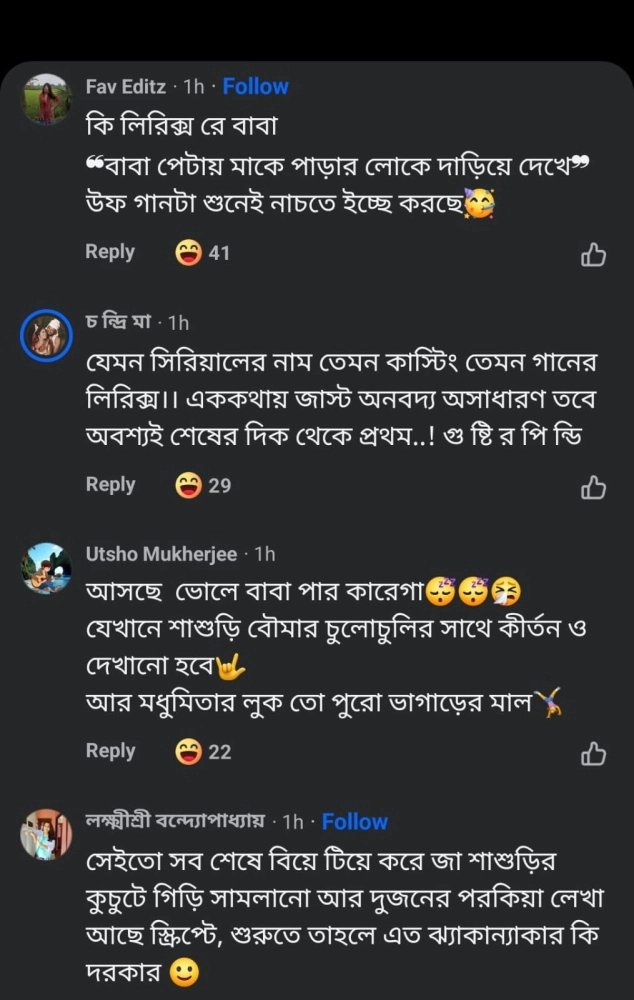 নেটিজেনরা মধুমিতার টেলিভিশনে ফেরার খবরে যতটা খুশি ছিলেন, ধারাবাহিকের প্রোমো প্রকাশ্যে আসতেই বেজায় চটেছেন। সমাজমাধ্যমমে একজন লিখেছেন, 'কি লিরিক্স রে বাবা! বাবা পেটায় মাকে, পাড়ার লোকে দাঁড়িয়ে দেখে!', অন্যজন লিখেছেন, 'যেমন সিরিয়ালের নাম তেমন কাস্টিং, তেমন গানের লিরিক্স। এক কথায় জাস্ট অনবদ্য অসাধারণ তবে অবশ্যই শেষের দিক থেকে।' আরেকজন লেখেন, 'সেইতো সব শেষে বিয়ে টিয়ে করে জা-শাশুড়ির কুচুটেগিরি সামলানো আর দু'জনের পরকিয়া লেখা আছে স্ক্রিপ্টে, শুরুতে তাহলে এত ঝ্যাকান্যাকার কি দরকার।' এদিকে, এক নেটিজেন লেখেন, 'রানু মণ্ডলের গলা এর থেকে ভাল। আর সিরিয়ালের নামটা মনে হয় উগান্ডা থেকে তুলে এনেছে।'