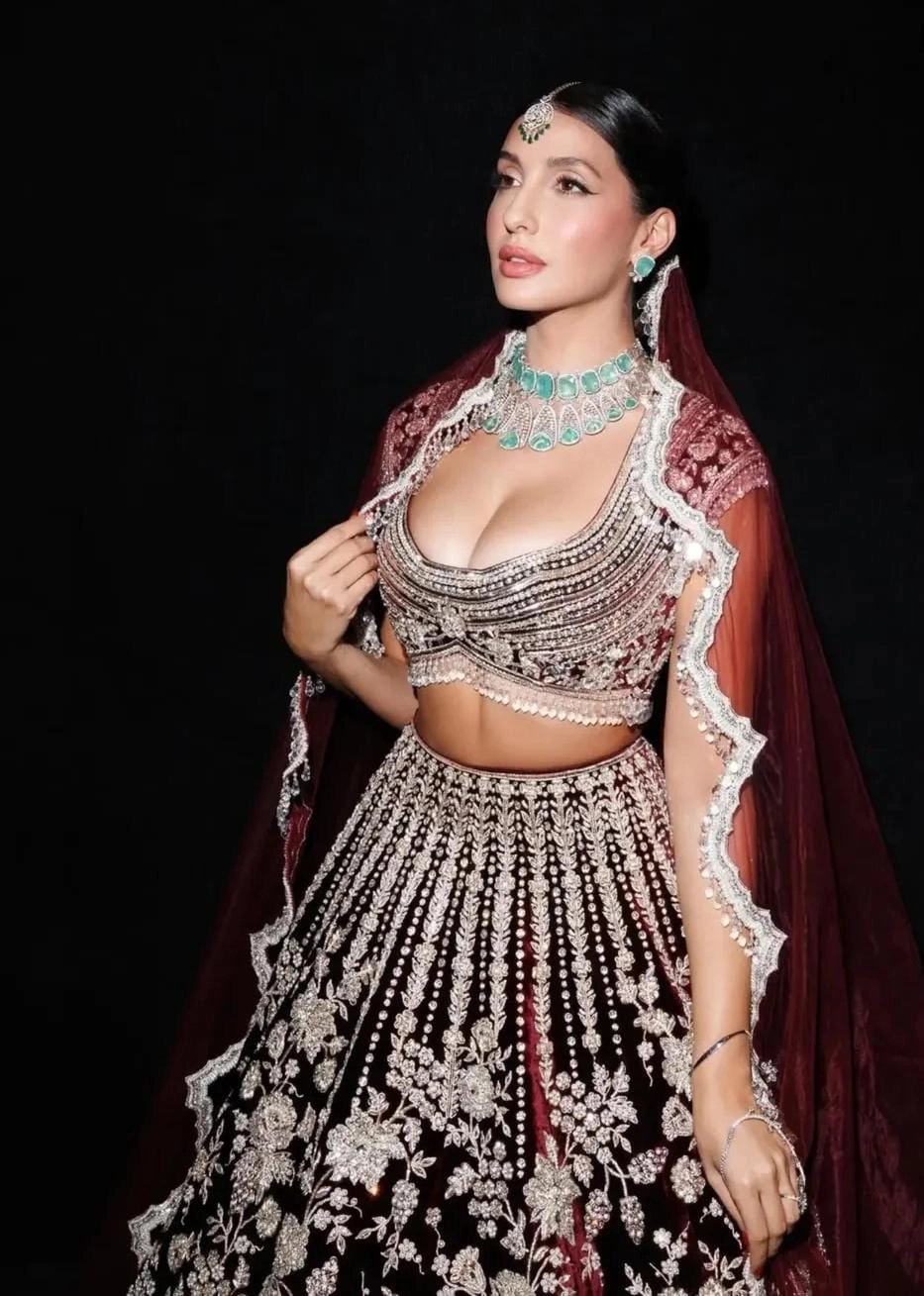 মনীশ মালহোত্রার ফ্যাশন মিউস হিসেবে নোরা ফাতেহি প্রতিবারই ফ্যাশনপ্রেমীদের জন্য এক দারুণ চমক নিয়ে আসেন। দুবাইয়ের এই লেহেঙ্গাতে তাঁর উপস্থিতি আবারও প্রমাণ করল যে ফ্যাশন এবং স্টাইল স্টেটমেন্টে তিনি এক অপ্রতিরোধ্য তারকা। এই পোশাকটি কেবল একটি ইভেন্টের জন্য নয়, এটি ফ্যাশন জগতে একটি নতুন ট্রেন্ড সেট করেছে। এই ধূসর ভেলভেটের উপর সোনার কাজ করা লেহেঙ্গাটি সেই সমস্ত আধুনিক কনেদের জন্য অনুপ্রেরণা, যাঁরা ঐতিহ্য এবং সমসাময়িক স্টাইলের মধ্যে একটি নিখুঁত ভারসাম্য চান। এটি প্রমাণ করে যে ব্রাইডাল ফ্যাশন আর শুধু লাল বা মেরুনের মধ্যে সীমাবদ্ধ নেই, বরং ধূসর ভেলভেটের মতো অপ্রত্যাশিত রঙও বিলাসবহুল কনের সাজে নতুন মাত্রা যোগ করতে পারে।