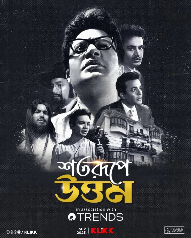 উত্তম কুমারকে ঘিরে আজও কৌতূহলের শেষ নেই সিনেমাপ্রেমীদের মধ্যে। মহানায়কের শততম জন্মদিনে তাই আবেগে ভেসেছেন প্রতিটি বাঙালি। বিভিন্ন মাধ্যম তাই উত্তম কুমারের এই জন্মশতবর্ষ পালন করতে উদ্যোগী। 'শতরূপে উত্তম' হল একটি অনন্য ডিজিটাল ইভেন্ট। যা প্রদর্শিত হচ্ছে ক্লিক ওটিটি প্ল্যাটফর্মে। মহানায়ক উত্তম কুমারের জন্মশতবর্ষ উদযাপন উপলক্ষে। যিনি ছিলেন বাংলা চলচ্চিত্রের অক্ষয় নক্ষত্র। তাঁর অভিনয়শৈলী, ব্যক্তিত্ব ও সাংস্কৃতিক অবদান আজও প্রজন্মের পর প্রজন্মকে অনুপ্রাণিত করে চলেছে।