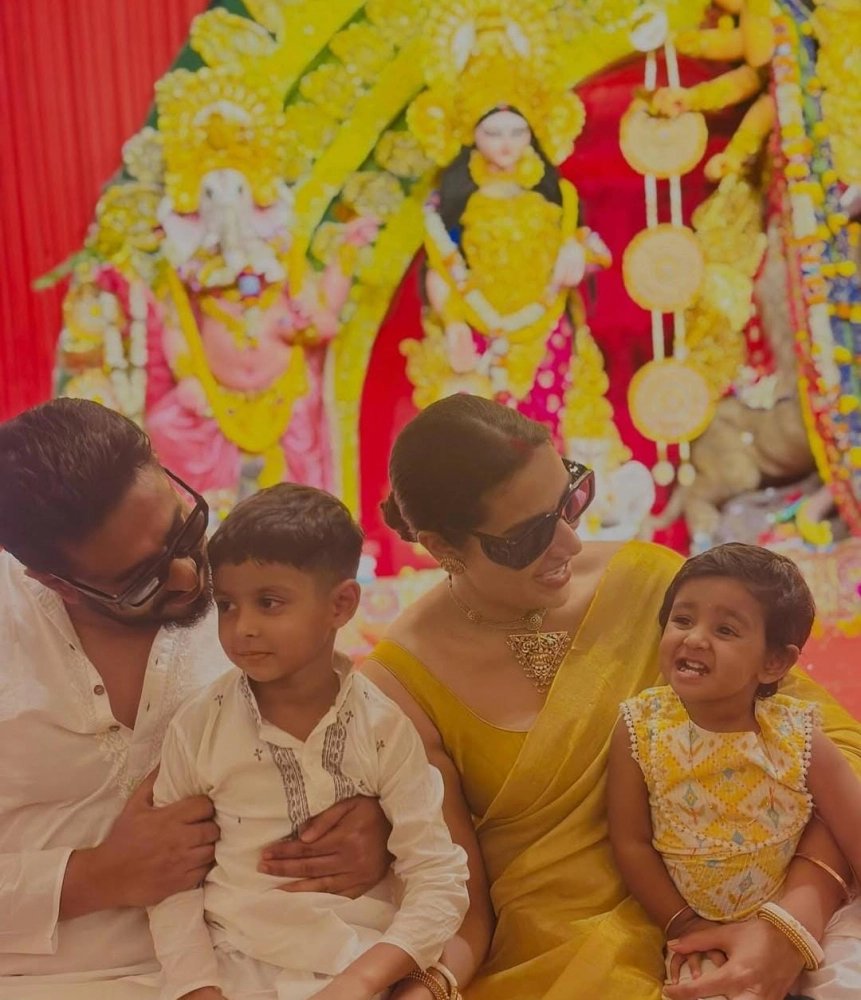 ছেলেমেয়ে, ননদ, ভাগ্নীর সঙ্গে কাটানো বেশ কিছু মুহূর্ত ভাগ করে নিয়েছেন অভিনেত্রী। পুজোর চার দিন কোনও নিয়মে নিজেকে বাঁধতে ভালবাসেন না নায়িকা। এই সময় যত ইচ্ছা খাওয়া-দাওয়া, বন্ধুদের সঙ্গে দেখা সাক্ষাৎ, আনন্দে মেতে থাকেন তাঁরা। রাজের বাড়িতে হয় বিশেষ খাওয়াদাওয়ার আয়োজন। ইন্ডাস্ট্রির অনেকেই উপস্থিত হন সেই জমায়েতে। এদিন হলুদ পোশাকে ছেলে ইউভান ও মেয়ে ইয়ালিনিকে সাজিয়েছিলেন অভিনেত্রী। একই রংমিলান্তিতে দেখা গেল রাজ ও শুভশ্রীকে। চোখে সানগ্লাস পরে আলাদা লুকে দেখা গেল তারকা জুটিকে।