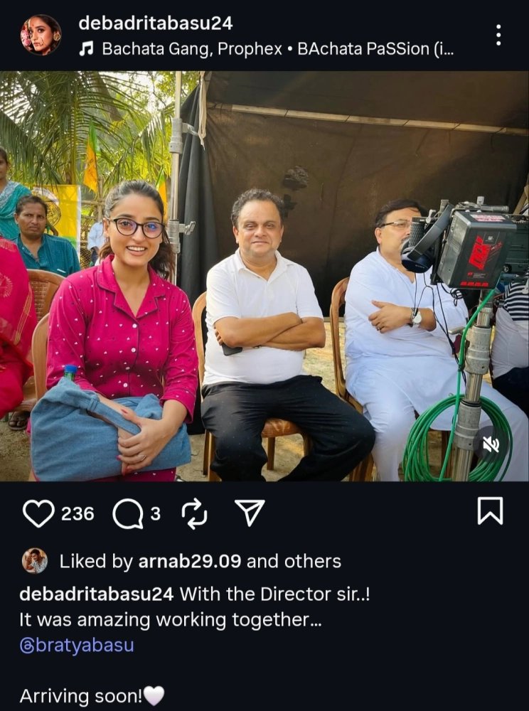 ছবিতে তিনি নিজের চরিত্রেই অভিনয় করছেন। গল্পের একটি মোড়ে দেখা যাবে দেবাদৃতাকে। ইতিমধ্যেই শুটিং শেষ করেছেন তিনি। সমাজমাধ্যমে পরিচালক ব্রাত্য বসুর সঙ্গে একটি ছবিও ভাগ করেছেন দেবাদৃতা। নতুন এই যাত্রায় আশাবাদী অভিনেত্রী।