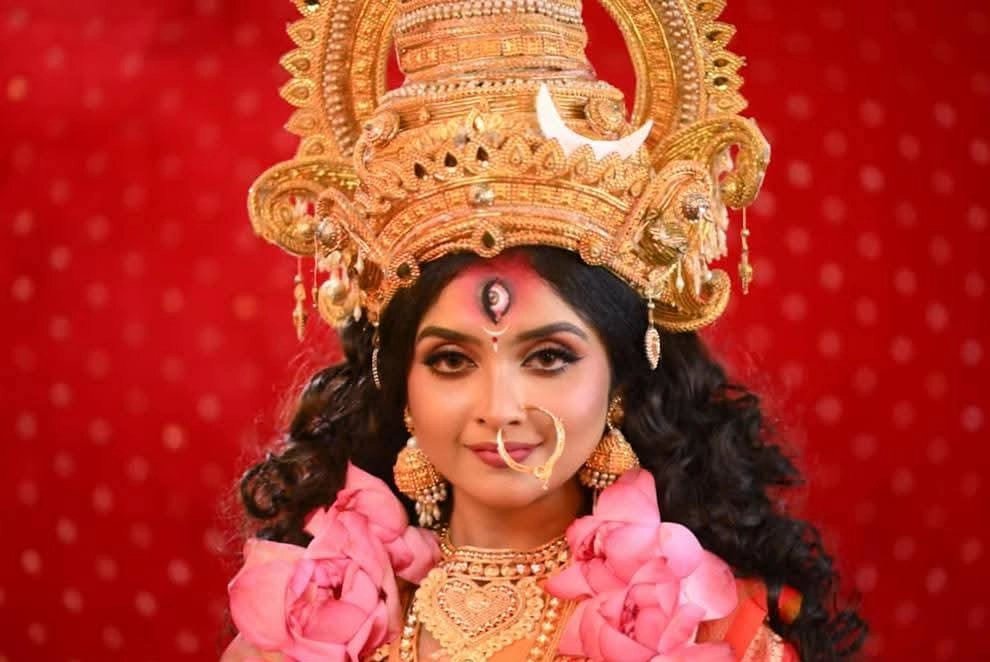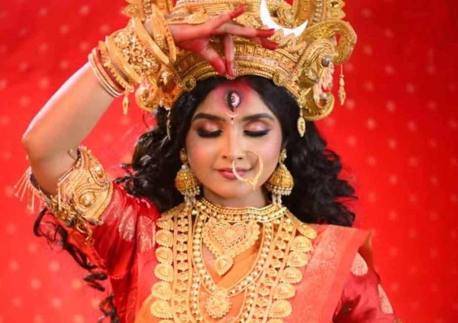 প্রতি বছর বিভিন্ন চ্যানেলে দেবী রূপে ধরা দেন দর্শকের পছন্দের নায়িকারা। এবার মহালয়ায় দেবী মহামায়া রূপে হাজির হবেন অভিনেত্রী সুদীপ্তা রায়। তবে কোনও চ্যানেলে নয়, দেবী রূপে তাঁকে দেখা যেতে চলেছে সমাজমাধ্যমের পাতায়। সুদীপ্তার লুক ইতিমধ্যেই ছড়িয়ে পড়েছে নেটিজেনদের মধ্যে। কিছু অংশের শুটিংও সেরেছেন অভিনেত্রী।