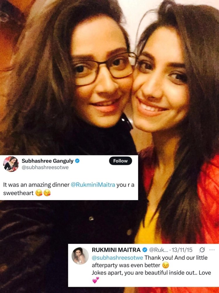অনেকেই মনে করেন, দেবের কারণে শুভশ্রী এবং রুক্মিণীর মধ্যে দূরত্ব রয়েছে। কারণ সব সময়ই দেবের প্রেমিকা হিসেবে তাঁদের তুলনা করা হয়। কিন্তু একসময় এই দুই অভিনেত্রীর মধ্যে দারুণ সম্পর্ক ছিল। এমনকী দুই পাশে দুই অভিনেত্রীকে নিয়ে সেই সময় ছবিও পোস্ট করেছিলেন দেব। একসঙ্গে ছবি তোলেন শুভশ্রী এবং রুক্মিণীও। শুধু তাই নয় সামাজিক মাধ্যমে একে অপরের সঙ্গে কথাও বলেন। তারা একসঙ্গে সময়ও কাটান। সেই সময়ে রুক্মিণীর উদ্দেশ্যে শুভশ্রী দেখেন, 'ধন্যবাদ একটা দারুন ডিনারের জন্য, তুমি আসলে সুইটহার্ট। ' রুক্মিণী আবার শুভশ্রীকে পাল্টা জবাব দেন, 'আমাদের ছোট্ট আফটার পার্টিটা আরও ভাল ছিল। যাই হোক মজা করছি। ভেতর ও বাইরে তুমি একজন দারুণ মানুষ।'