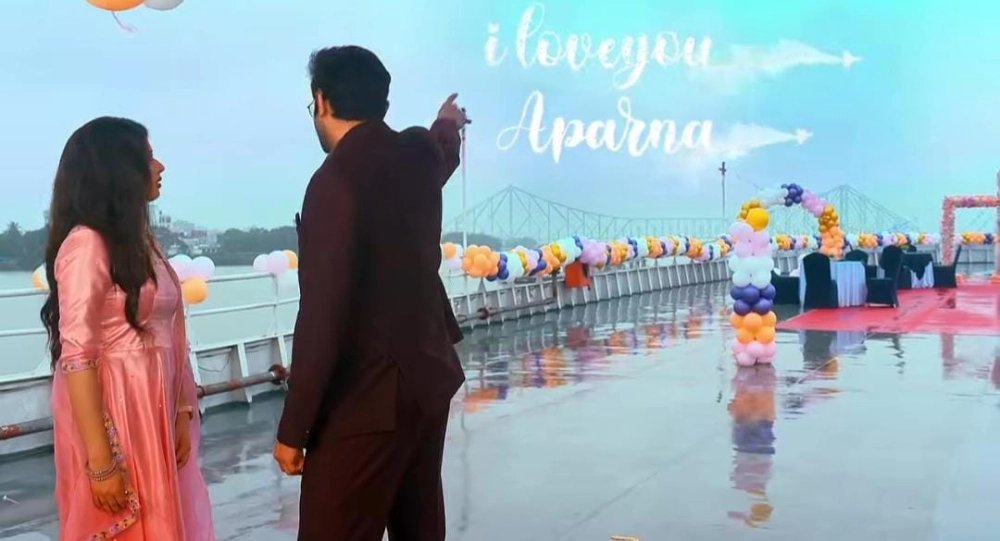 আর দেরি না করে সে অপুকে গঙ্গা বক্ষে নিয়ে যায়। বাঙালির প্রেম নিবেদনের আদর্শ জায়গা হিসেবে গঙ্গার তীরকেই বেছে নেয় সে। আতসবাজি দিয়ে আকাশের বুকে লিখে অপুকে প্রেম নিবেদন করে আর্য। অবশেষে আর্যর মুখে এই কথা শুনে আবেগে ভেসে যায় অপু। ছুটে এসে সে জড়িয়ে ধরে আর্যকে। তাদের ভালবাসার যাত্রা শুরুর এই প্রোমো দেখে উচ্ছ্বসিত দর্শক মহল। একদম রূপকথার মতো করে যেন মিলে গেল আর্য-অপর্ণার পথ।