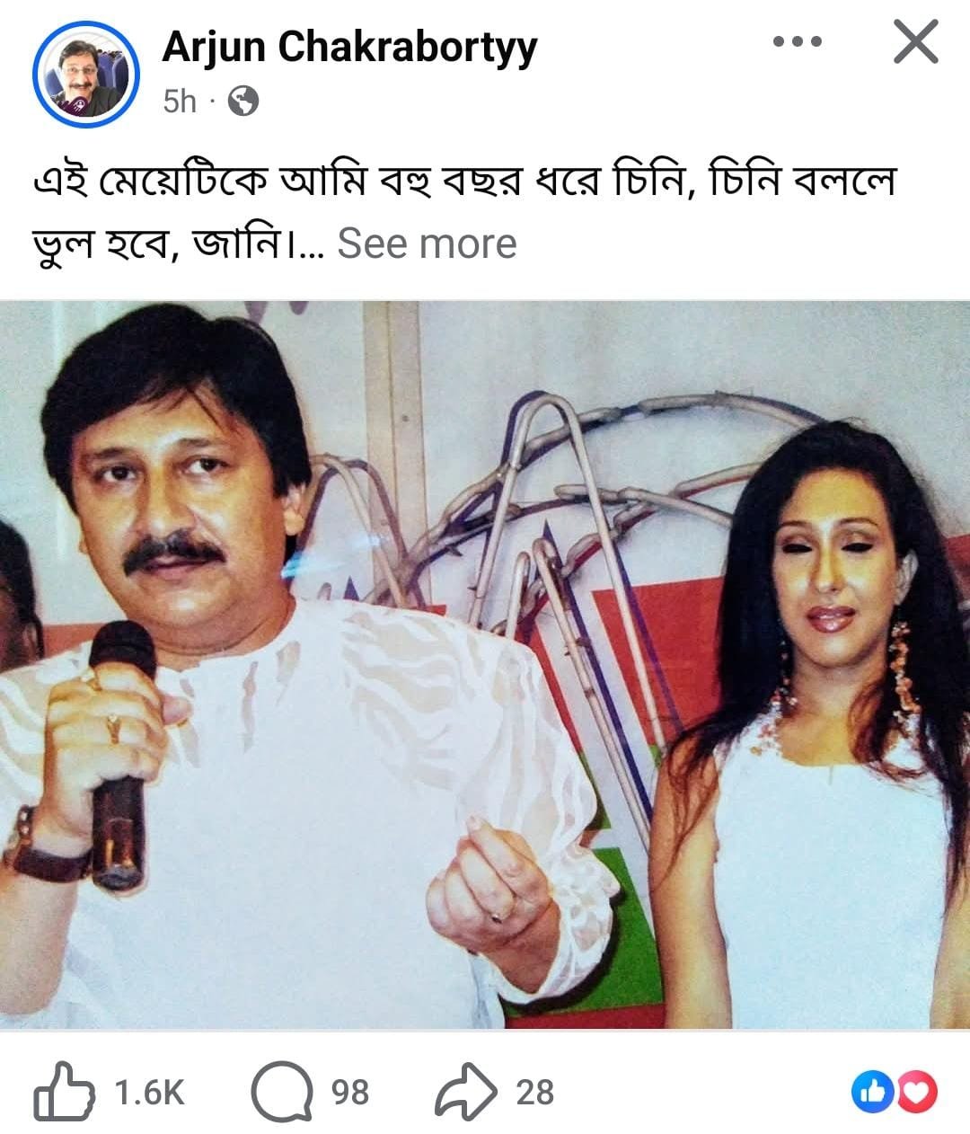 সমাজমাধ্যমে অর্জুন চক্রবর্তী লিখলেন,