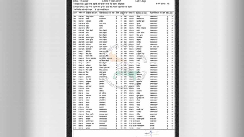 এই তালিকাটি বারাণসীর ভেলুপুর এলাকার ভোটার তালিকা, যেখানে বিভিন্ন বয়সের ৫০ জন ভোটারের নাম রয়েছে এবং প্রত্যেকের পিতার নাম হিসেবে 'রামকমল দাস' লেখা আছে।