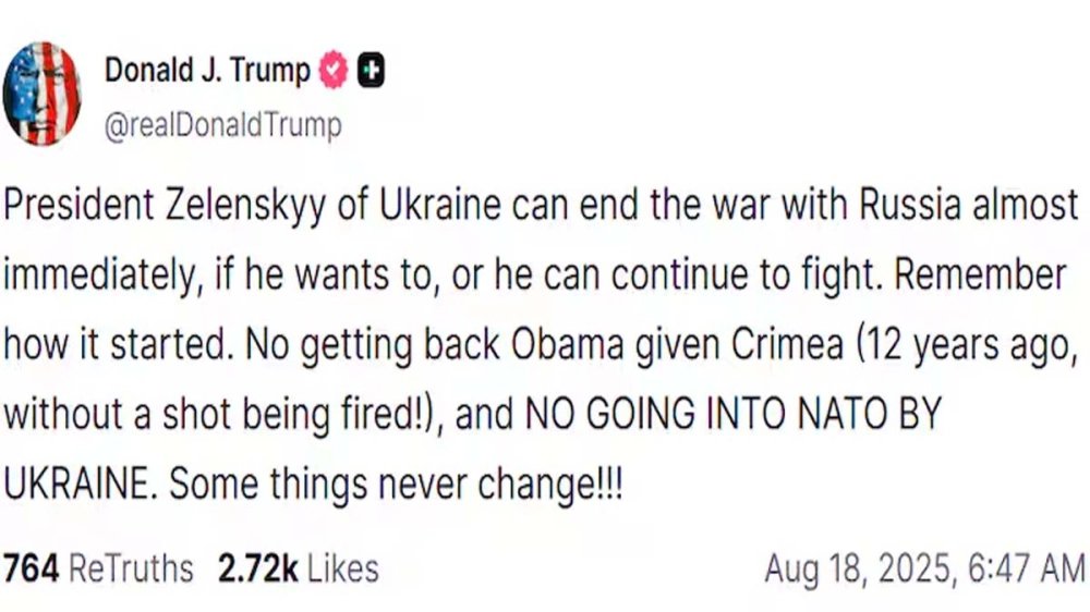 এরপরই তিনি লিখেছেন, 'ওবামার দেওয়া ক্রিমিয়া আর ফেরত পাবেন না। আর ন্যাটো-তেও ইউক্রেন ঢুকতে পারবে না। কিছু জিনিস অপরিবর্তনশীল।'