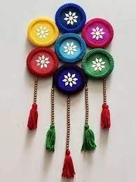 ওয়াল হ্যাঙ্গিং: রংবেরঙের কয়েকটা প্লাস্টিকের চুড়ি লাগবে। আর লাগবে কিছু রঙিন টাসল, কাপড় বা প্লাস্টিকের ফুল, দেওয়ালে ঝোলানোর হুক। চুড়িগুলো পরপর জুড়ে নিন পছন্দসই আকারে। ফুলের মতো হতে পারে। হতে পারে ডায়মন্ড শেপ বা অন্য কোনও জ্যামিতিক আকার। প্রত্যেকটা চুড়ির নিচের দিকটায় ছোট্ট ছোট্ট রঙিন টাসল ঝুলিয়ে দিন। মনের মতো ডিজাইনে বসিয়ে নিন ফুলগুলো। এবার সবচেয়ে উপরের চুড়িটার সঙ্গে দেওয়ালে ঝোলানোর হুক জুড়ে নিলেই ওয়াল হ্যাঙ্গিং রেডি!
