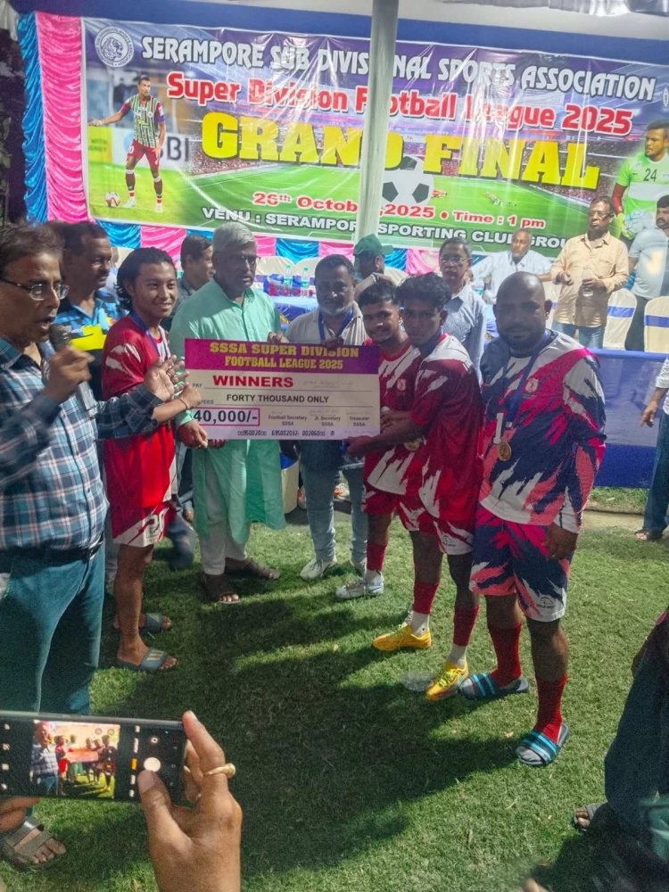 আজকাল ওয়েবডেস্ক: শ্রীরামপুর সাব ডিভিশনাল স্পোর্টস অ্যাসোসিয়েশনের উদ্যোগে গত ছ' মাস ধরে প্রথম ও সুপার ডিভিশন মিলিয়ে প্রায় ২০০ ফুটবল ম্যাচ অনুষ্ঠিত হয়েছে। রবিবার ছিল প্রথম ও সুপার ডিভিশনের ফাইনাল। সেই ফাইনালকে কেন্দ্র করে শ্রীরামপুরে বসেছিল চাঁদের হাট।