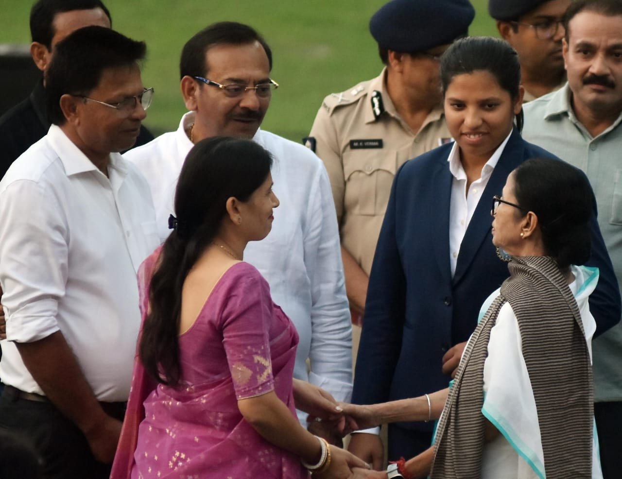 যাকে ঘিরে এত আড়ম্বর, সেই রিচা নিরুত্তাপ। কালো ট্রাউজার এবং সাদা কালো টপ পরে সকাল এগারোটা নাগাদ বিমানবন্দরে নামেন। সরাসরি যান হোটেলে। সেখান থেকে ইডেন। সন্ধেয় একটি অনুষ্ঠানে যোগ দিয়ে ছুটি কাটাতে যাবেন। শনি বিকেলে ট্রাউজার এবং বোর্ডের লোগো লাগানো ব্লেজার পরে সংবর্ধনা অনুষ্ঠানে যোগ দেন রিচা। বিশ্বকাপ জয় থেকে সেলিব্রেশন, উৎসব সবকিছুই স্বপ্নের মতো লাগছে ২২ বছরের বিশ্বজয়ীর। বিশ্বকাপে সবচেয়ে বেশি ছয় মারার নজির গড়েছেন বাঙালি উইকেটকিপার ব্যাটার। তাঁকে 'লেডি মাহি' বলা হচ্ছে। অনায়াসে এত ছক্কা হাঁকানোর রেসিপি কী? রিচা বলেন, 'নেটে ব্যাট করার সময় টার্গেট সেট করি। সেটা আমাকে সাহায্য করে। ছয় মারার প্র্যাকটিস করি। বল বাছাই করা খুব গুরুত্বপূর্ণ। সেখানে বেশি ফোকাস করি। আমার বন্ধুরা আমাকে ছোট মাহি বলে। সবাই আমার থেকে ছয় চায়। তাই মারার চেষ্টা করি।' রিচা জানান, বিশ্বকাপ জয়ের পর সারারাত আনন্দের জোয়ারে ভাসেন তাঁরা। ড্রেসিংরুমে পার্টি চলে। শনিবার সিএবির সংবর্ধনা অনুষ্ঠানে মুখ্যমন্ত্রী মমতা ব্যানার্জি ছাড়াও ছিলেন ক্রীড়ামন্ত্রী অরুপ বিশ্বাস, পুলিশ কমিশনার মনোজ বর্মা। এছাড়াও ছিলেন ঝুলন গোস্বামী এবং সিএবির কর্তারা। ছিলেন বিশ্বজয়ী কন্যা রিচার বাবা-মা। ১৪ নভেম্বর ইডেনে শুরু হবে ভারত-দক্ষিণ আফ্রিকা টেস্ট। সিএবির তরফ থেকে মমতা ব্যানার্জিকে ফ্রিডম ট্রফির রেপ্লিকা দেওয়া হয়। ম্যাচ দেখতে আসার আমন্ত্রণ জানানো হয়।
