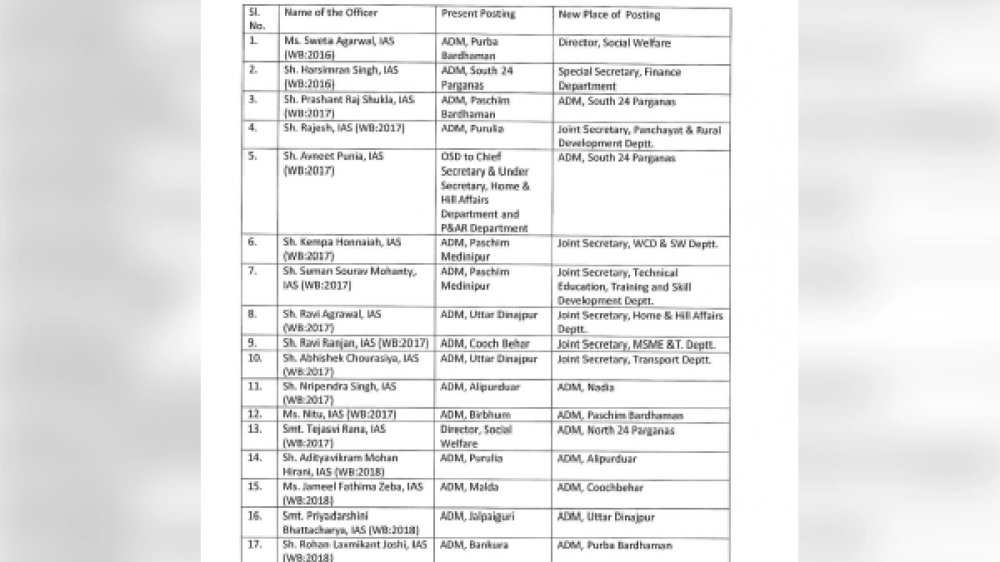 নবান্নর জারি করা এই বিজ্ঞপ্তিতে, তালিকায় জেলাশাসক, অতিরিক্ত জেলাশাসক, মহকুমা শাসক-সহ কোন কোন আমলা-